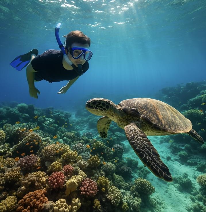 Partez le matin en bateau depuis la marina et découvrez des spots de snorkeling soigneusement sélectionnés. Explorez des récifs coralliens riches en vie, avec la possibilité d’être accompagné par un guide passionné. Déjeuner et boissons sont servis à bord, suivis d’un moment de détente. L’après-midi, profitez d’une nouvelle session de snorkeling avant une collation et le retour en fin de journée une journée placée sous le signe de la découverte et de la détente.